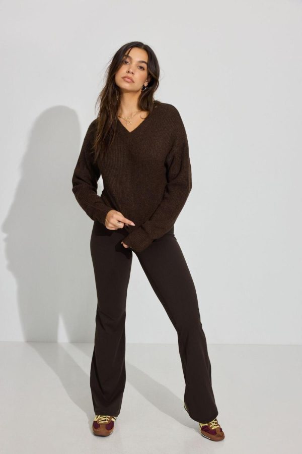 Garage Clothing Tops | Women Cozy V Neck Sweater Brown