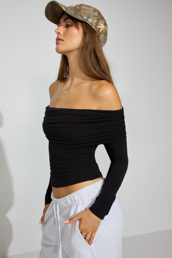Garage Clothing Tops | Women Sexy Cozy Off Shoulder Long Sleeve Top Black