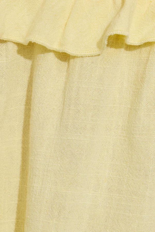 - Ruffled trim detail at elasticized midriff