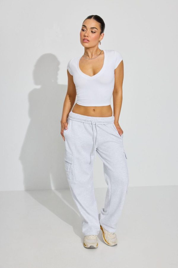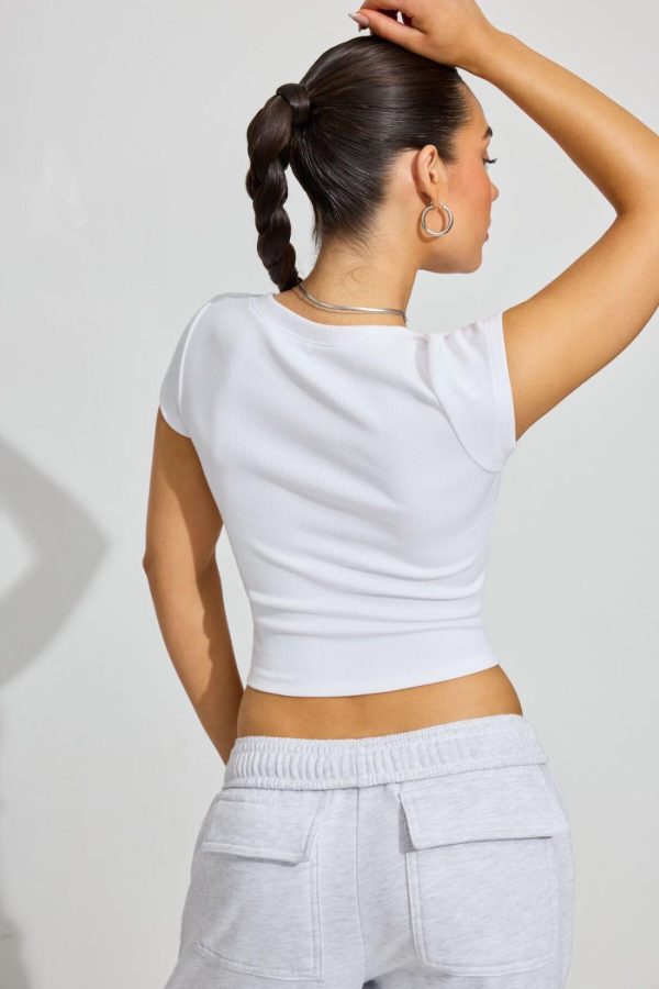 Garage Clothing Tops | Women V Neck Ribbed Tee WHITE