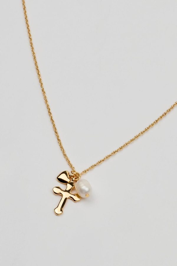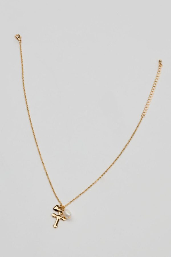 Garage Clothing Women’s Cross, Pearl & Heart Necklace in White
