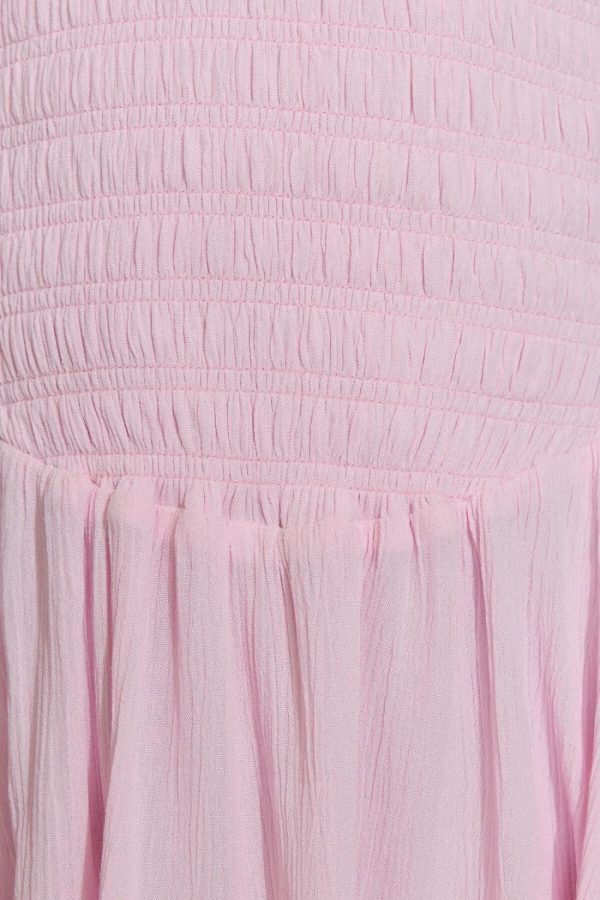 - Flattering smocked midriff with stretch comfort