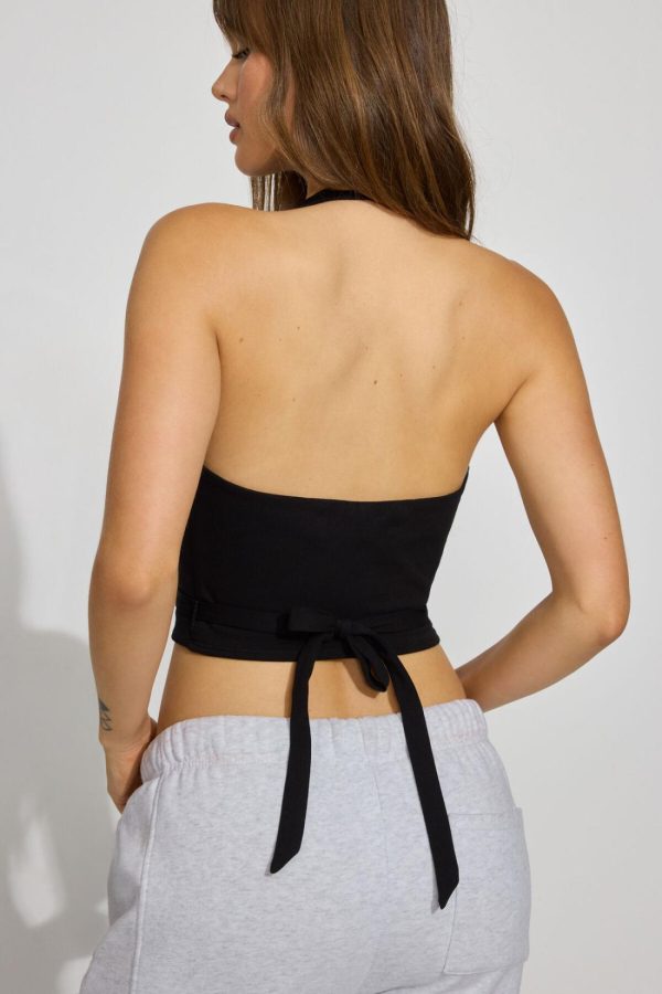 Turn heads with this stunning wrap halter top that commands attention. Perfectly pairs with your favorite denim skirt for a complete look!