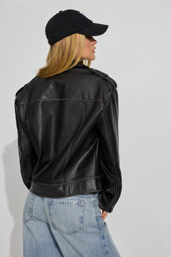 Embrace that effortlessly cool biker aesthetic with this must-have jacket. Perfectly pairs with your favorite black jeans for a complete edgy look.